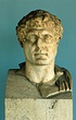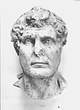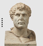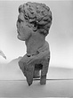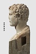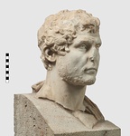 | Description: | Mended from five pieces. Missing: end of nose, edge of left ear; right shoulder and back; small breaks in drapery and neck on left side, slice of hair over the right temple. The height of the bust is preserved below the upper part of the breast. It represents a youngish to middle-aged man with untidy curly hair and slightly curling beard and mustache. The eyebrows and lashes are indicated with the tooth chisel; the beard and mustache are also tooth-chiseled. The fold of drapery preserved on the left shoulder and back is much drilled. The iris and the pupil of the eye are drawn in, the pupil deeply incised. A deep wrinkle horizontally crosses the forehead. The bust was set on a herm: the cutting for attachment may be seen on the left side. The "smooth" left side is finely picked and the corner between it and the sloping back beveled. White Pentelic marble. | |