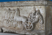 | Title: | Base with Relief of Charioteer, Warrior and Quadrica | |