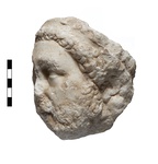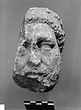 | Description: | Back and top of head, and most of proper right side of face and chin, are missing. The nose is battered. The hair is disposed in small, short locks, bound by a filet. The eyes are deep sunken at the inner corners and the gaze is upturned with an intensity of expression accentuated by the swollen character of the lower lids. The head is turned three-quarters to the left; the mustache and beard are clipped short. Pentelic marble. | |