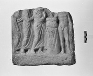 Description:   Broken away above and at the right, the heads of all the figures missing.