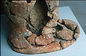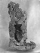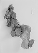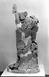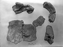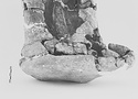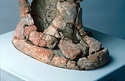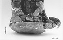 | Description: | Put together from many pieces; most of the legs, much of the hips, part of the back, and a fragment of the chin and mouth, remain, together with many non-joining fragments. A standing male figure, about two-thirds life-size, its leg thrust forward. Over the (waxed) core, gritty clay was applied in three or four layers to a total thickness of 0.03m. to 0.045m. The outermost layer was fired red (from a preliminary baking); the innermost black, from the molten metal, particles of which cling to its surface. For attachment to its base, a spike was let down from each heel. Note in the middle of the back a round hole, possibly for one of the pins that held the inner and outer polos in position. S 797, B 1538, B 1541 (wrong number) are also parts of the same mould. Cf. JdI 52 (1937), p. 37. | |