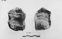 | Dimensions: | P.H. (face fragment) 0.07; P.W. (face fragment) 0.05; W. (base) 0.197; L. (base) 0.365; Diam. (hole in back) 0.006 | |