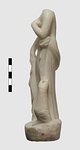 | Description: | Standing female figure, nude except for her Hymettian, which covers her lower back and right leg in front, where it is held in place by her right hand. The other end is thrown over the pillar on which she rests her left elbow. Her left hand is held over her breast in a gesture of modesty. Her weight is on her left leg and her right is bent at the knee. At her left side is a dolphin. Summary treatment. Polished surface of marble. Pentelic marble. Cf. S 2229 (Κ 3980), S 2937 (Γ 2752). Cf. Hesperia 81 (2012), p. 338, n. 152. | |