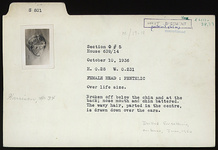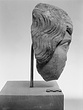 | Description: | Over life-size. Broken off below the chin and the back; nose, mouth and chin battered. The wavy hair, parted in the center, is drawn down over the ears. Pentelic marble. Drilled for setting on base June 1950. | |