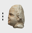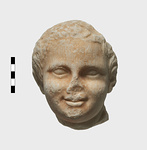 | Description: | End of nose missing, reddish stain on face and top of head. Back of head added separately and now missing, dressed surface for its attachment. Head of a chubby, smiling child tilted slightly to his left, with curly hair rendered impressionistically. Good work. Pentelic marble. | |
