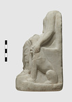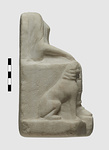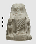 Female figure wearing a chiton and himation seated in a high-backed throne, which has lions as front legs; the bodies of the lions are carved in relief against the sides of the throne. No tympanon or patera.