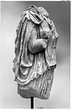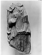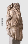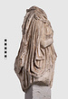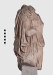 | Description: | Missing: the head, the right hand and lower arms, the legs from above the knees, and all of the left side. Preserved surface somewhat eaten away, especially at the front. Standing female figure, probably from a relief, about half life-size. She wears a Doric chiton, with overfold and apoptygma, and over it at the back a cloak of which one end falls over her right shoulder. The right arm is bent at the elbow, and extended as if to hold something. Flesh surface at neck carefully polished. Drapery carefully and elaborately rendered. Altar of Ares series. Pentelic marble. | |