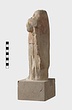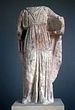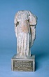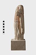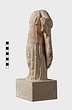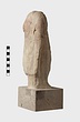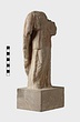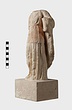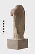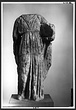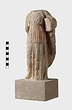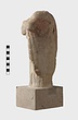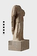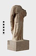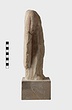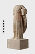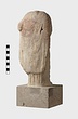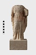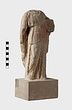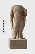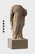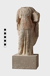| Description: | Draped standing figure wearing long chiton with overfold, and a heavy cloak at the back. In the left arm part of a rectangular object: kithara (lyre?). The weight is on the left leg, the right knee bent, and the foot drawn back slightly. Apollo Patroos type. Pentelic marble. Drilled for setting with bronze pin in hollowed base 1956. Cf. Hesperia 86 (2017), p. 275, n. 4. | |