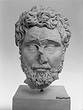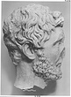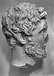 Description:   Bearded male head broken off at root of neck; nose and eyebrows chipped, left ear lobe broken off. The brows furrowed, the beard and hair freely drilled. The hair at back of head merely blocked out. Surface of marble fresh and white, little weathered. Antonine style.