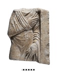 | Description: | Head, upper part of shoulders, and legs below thighs broken away. Standing draped male figure set in niche. Right arm diagonally across body of left shoulder, and left arm at side, holding upper garment in place. Careless work. Pentelic marble. | |