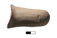| Description: | Whole handle preserved; both attachments, no rim. Rectangular stamp. | |