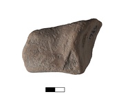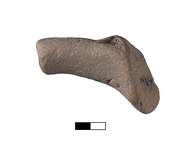 | Description: | Very worn, stamp poorly preserved. Handle fragment with upper attachment. Rectangular stamp in relief. Letters visible along both sides; device in the center of the field (cluster?). Dark orange clay with much mica. | |