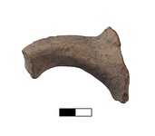 | Description: | Worn, faint stamp. Black stain on surface. Handle fragment with upper attachment. Rectangular stamp in relief. Parts of letters visible along both long sides and one of the short side of the field. Other half of the field is occupied by a device (earring). Brown micaceous clay. [Θασίων | Πυ]θό[λ|εως Πε]|ρ[ί]θυ[μο(ς)] / earring ---- | |