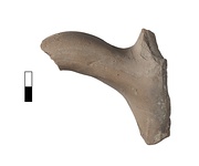 | Description: | Stamp partly preserved. Handle fragment with upper attachment. Rectangular stamp in relief, one corner preserved. Letters visible along one of the long sides; partly preserved device in the center (spear?) Brown orange clay, micaceous. Light brown on surface. [Θα]σίων / unidentified device / [-] | |