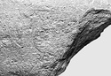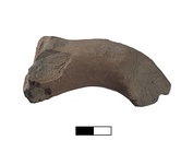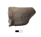 | Description: | Stamp poorly preserved. Handle fragment with upper attchment. Rectangular stamp in relief partly preserved. Letters visible along both the long sides; unidentified device in the center. Dark brown clay, micaceous. Gray at core. Θα[σίων] / unidentified device / [.] ρ [-] | |