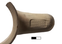 Description:   Part of rim and large piece of vertical part of angular handle preserved.