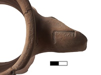 | Description: | Neck and upper part of both handles preserved. Pinkish-buff clay with dark bits; pinker at the core. | |