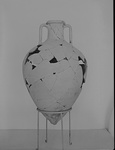 | Description: | Plain amphora; tip and many wall fragments missing; plump body, short neck, massive down-turned lip. Buff clay, yellow on surface; slightly micaceous. Stamp on one handle. Naxian(?). | |
