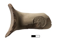 Chipped impression from a rather hastily made die set in the clay while it was too wet; rose.