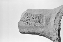 | Writing: | [ Ἐ]πὶ Πολ̣[ί] [τ]α Διονυ σίου Κνί δ̣ιον | |
