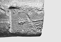| Description: | Rectangular stamp well down on curve; two lines; symbol (thyrsos?) across centre. | |