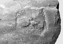 | Description: | Rectangular stamp; line at top and bottom; symbol (fire-ball or thyrsos?) at centre. | |