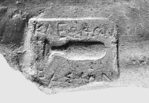 | Description: | Rectangular stamp with alabastron(?) at centre. | |