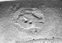| Description: | Pale pink clay with white grits and much mica. Circular stamp with unidentified device at centre and traces of letters around it; head of animal. early Thasian. | |
