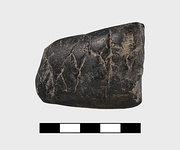 | Description: | Fragment of stone, perhaps originally oval. The unbroken surfaces are polished extremely smooth. Hard black stone. | |