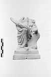 | Description: | Fragment a) draped legs of a partly nude figure. Fragment b) Stepped base, with traces of feet. Both encrusted with a heavy limey deposit. Pale buff to gray clay, with fine buff surface. ADDENDA: The two fragments are joined. | |