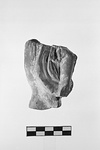 | Description: | Fragment with drapery and part of a limb. Remains of white paint. Hard pinkish clay, gray at core and on surface. ADDENDA: Fragment of left side of wing of sizable bird (cock ?) to left on which sits a figure wearing a chiton to knees of a trousered leg. Touch of glaze. | |