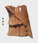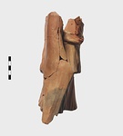 | Description: | Head and shoulders, much of upper body, left arm, and legs from knees missing. Figure wearing a short chiton reaching only to the knees. It has an overfold and is girt diagonally, over the left shoulder and with a band under the left arm. Across the back, as if held in place by this arrangement, is a cloak which is drawn round to envelop the right arm which hangs at the side, the hand slightly outstretched, and the drapery, which conceals it, falling in a heavy fold at the side. Fragmentary. No certain remains of white color. Hard red clay; red to buff surface. Cf. Head T 1409. | |