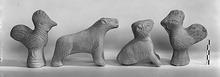 Details gouged. Mold made lengthwise in two pieces. A small vent hole in belly near hind legs. Slight traces of white color in mouth.