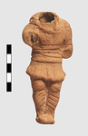 | Description: | Head and forearms, which were extended in front, missing. The figure is poised with the knees slightly bent. It wears a short chiton, with sleeves, to the knees, and bound around the waist. The legs bound below the knees. Fabric as T 1469 (red clay; somewhat micaceous). | |
