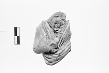 | Description: | Part of the torso and chin of a bearded figure enveloped in a cloak and with right arm held across chest. Ample traces of white. | |