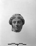 | Description: | First interpretation: head of woman. Head of Apollo, at fairly large scale, tipped slightly to his right. Broken off at neck; chips missing. The hair is parted in the center and drawn over the brows to a low knot at the back; bound by a fillet. Two long curls escape at either side of the neck. Pupils indicated. Made hollow; no remains of color. Good work. Red clay with buff surface. Cf. Dimitrakopoulou (2024), no. A59, p. 175, fig. 11. | |