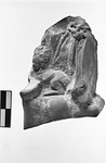 Description:   A single fragment preserves most of front of torso of figure with lion in lap, a tympanum in left hand and a patera in right.