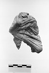 | Description: | Figure closely wrapped in himation, which covers both arms. Mended from three pieces; head, lower part, and most of back missing. Hole in top of the body for head. Finelly modelled, but shallow. Traces of white. Pinkish-buff clay. | |