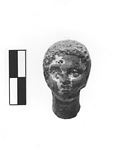 | Description: | Plump face; short, cropped hair, more carefully indicted in front. Broken off at base of neck; lower left side of face chipped. Traces of white on face, red on hair. Pinkish-buff clay. ADDENDA D.B.T. : A second fragment does not belong. Cf. T 3234 b, ΔΔ 525. | |