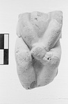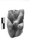 | Description: | Fat nude figure seated, with hands crossed on left knee; head, shoulders and feet missing. Broken top and bottom; part of original edge preserved at back. Gritty blond clay with light buff surface and a few traces of white. | |