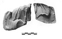 | Description: | Two non-joining fragments, from a mold for a draped figure with curly hair or beard. Perhaps Papposilenos? | |