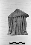 | Description: | Two fragments from the lower part of draped woman: Fragment a), the front. Fragment b), the back from the same or a similar figure. Left foot with forked shoe protrudes from drapery. Smooth inside; very thick fabric. Buff gritty clay. | |