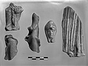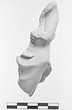 | Description: | Two fragments of a seated draped figure. a) Left arm and leg; the hand rests in the lap, and over it falls a part of the drapery. b) Right knee and lower leg. Loose folds of drapery cover the knees and legs and fall down on either side. Traces of white slip. Mold made, hollow. Pinkish buff clay. Publication: Late Hellenistic. | |