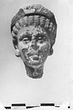 | Description: | Melon hair crowned with high stephane. Round blobs for earrings. Broken at neck; back of head missing and chips. White engobe on face, earrings and stephane; dark red on hair, and over white on the stephane. Gray-buff clay. | |