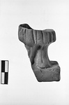 | Description: | Lower part of draped figure wearing a garment hanging in straight folds to well above the ankles, and high boots laced up the front. Rectangular base. Perhaps Artemis (?). A few traces of white. Pinkish clay. ADDENDA 1953, DBT: This fragment was originally numbered T 2074 b; but was later determined not to belong. | |