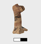 | Description: | Torso only preserved. Arms extended forward. Bands of red and black around body. | |