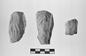 Description:   Three non-joining fragments of goat legs, probably from a satyr-figure. With this probably is a bit of tree (d), a trunk dividing into two branches with open hollow tops.