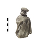 Moulded, legs and head and hat separately. Body hollow, back unmoulded.