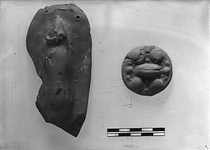 | Description: | Disk with four appliqué seashells around a semicircular projection. Between the shells are small lumps of clay, smaller shells (?). Unglazed. Buff clay. Possibly a small lid, the projection serving as handle. Cf. Pottier and Reinach (1887), Nécropole de Myrina, pp. 245-246. | |