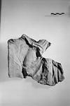 | Description: | Mold for a large plaque. Against broken background have preserved bent right knee of figure with swirls of drapery above over hips and presumably falling between legs. Mended. One side front and back partially preserved. Back very rough. Fabric: pinkish-yellow with gray-black core. ADDENDA Joins with T 4117. From an architectural relief (?). | |